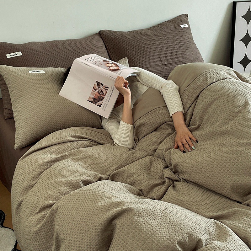 レトロクラスAコットンワッフル4点セット無地インスタイルブロガー純綿ベッドシーツキルトカバーシンプル寝具