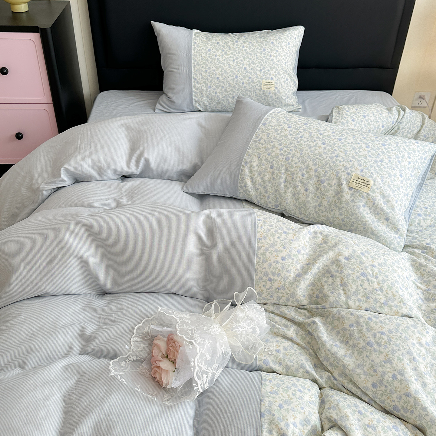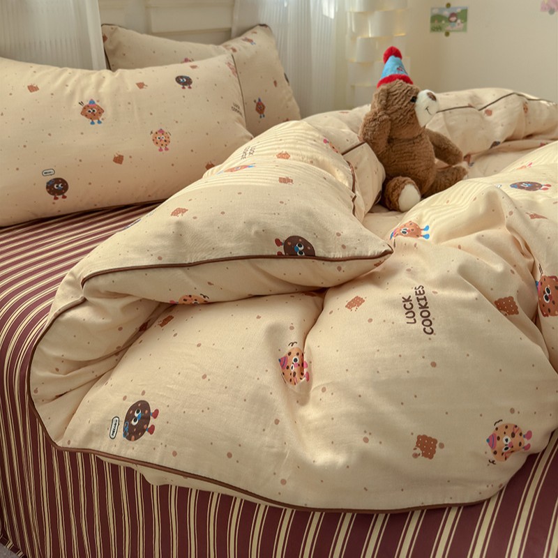 ガーリーピュアコットン4点セット韓国インスタイル漫画コットンキルトカバー寮3点セット1.8mシーツ卸売