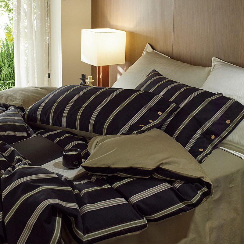 ボタン式60純綿先染めジャガード4点セット、ミッドセンチュリースタイルコットンドミトリー3点セット、B&Bアパート寝具