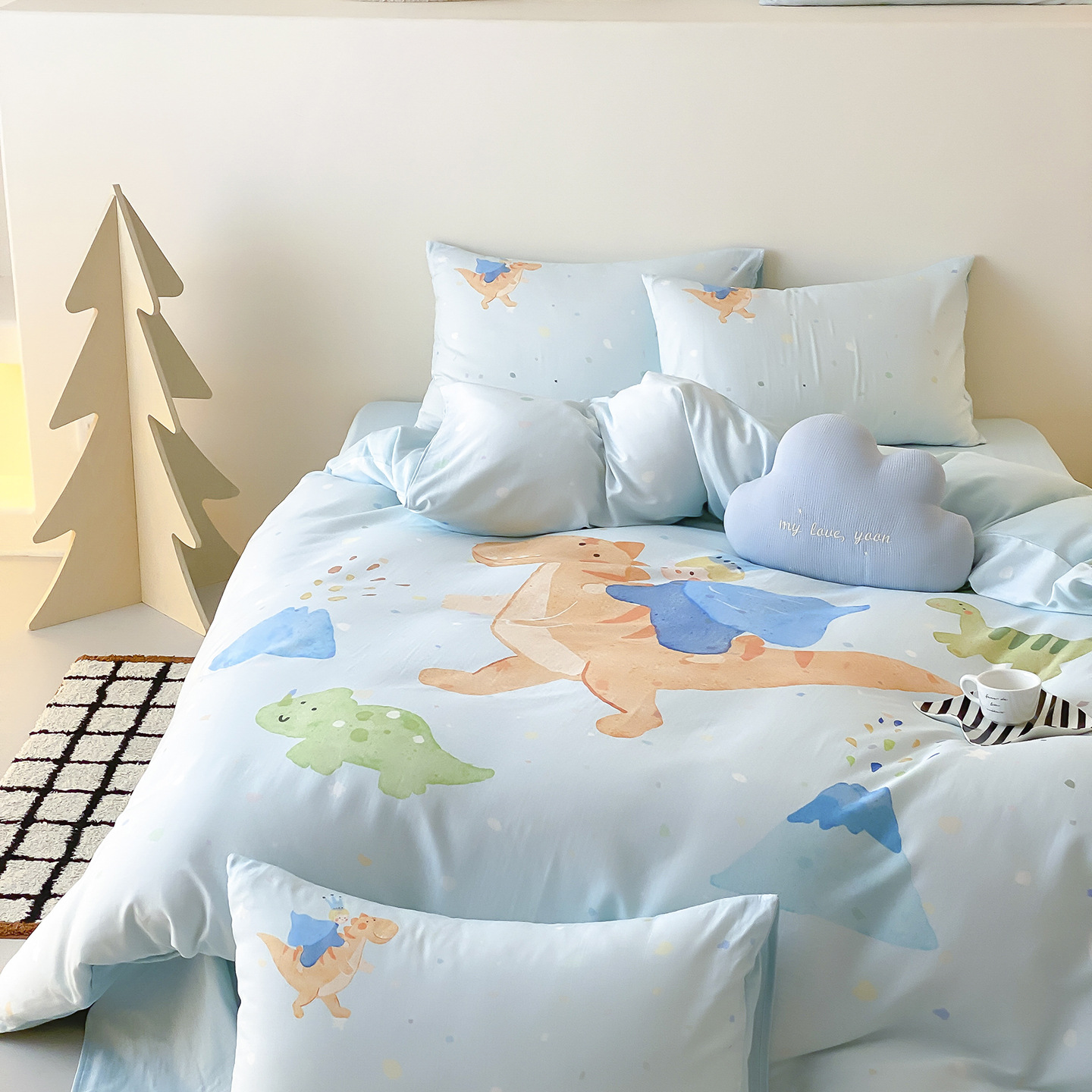 漫画子供のような恐竜綿二層糸 4 点セット子供寮かわいい綿シーツキルトカバー親子寝具