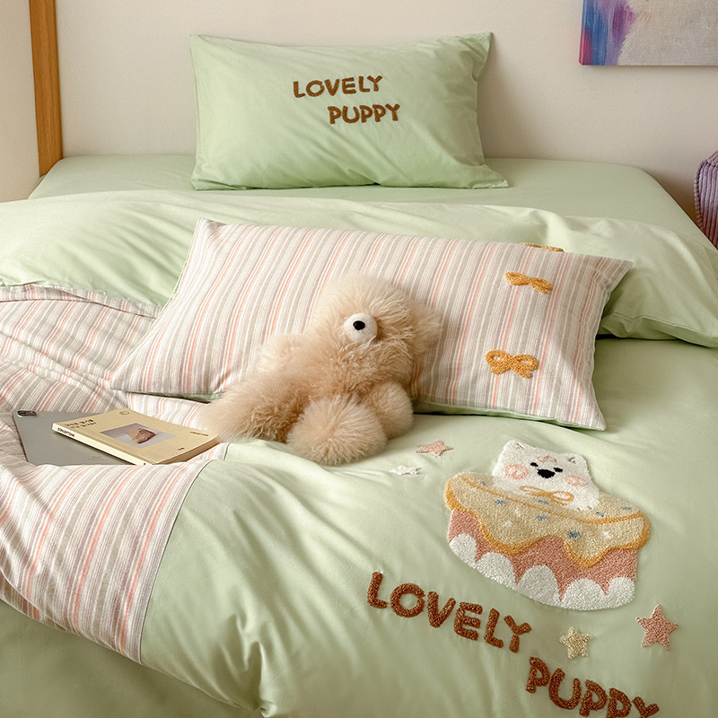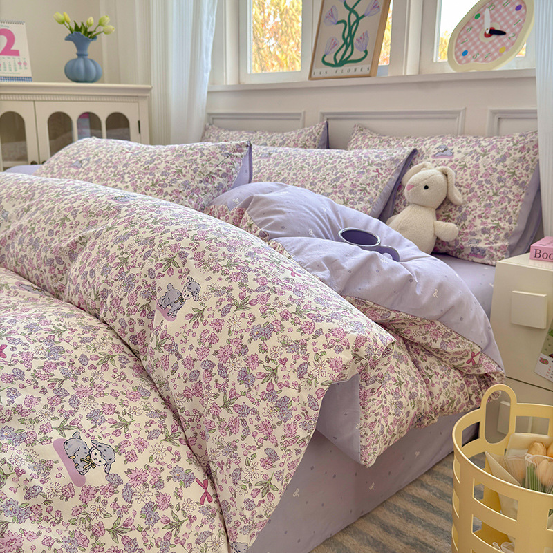 インカラーシェル刺繍綿4点セットAタイプ純綿二重糸漫画花柄韓国綿100シーツキルト