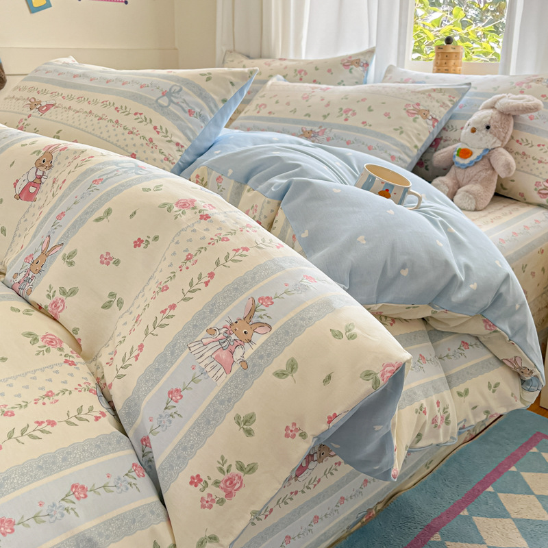 ins 漫画綿学生 3 点セット卸売メーカー純綿ベッド 4 点セット小さな新鮮なベッドシーツキルトカバー