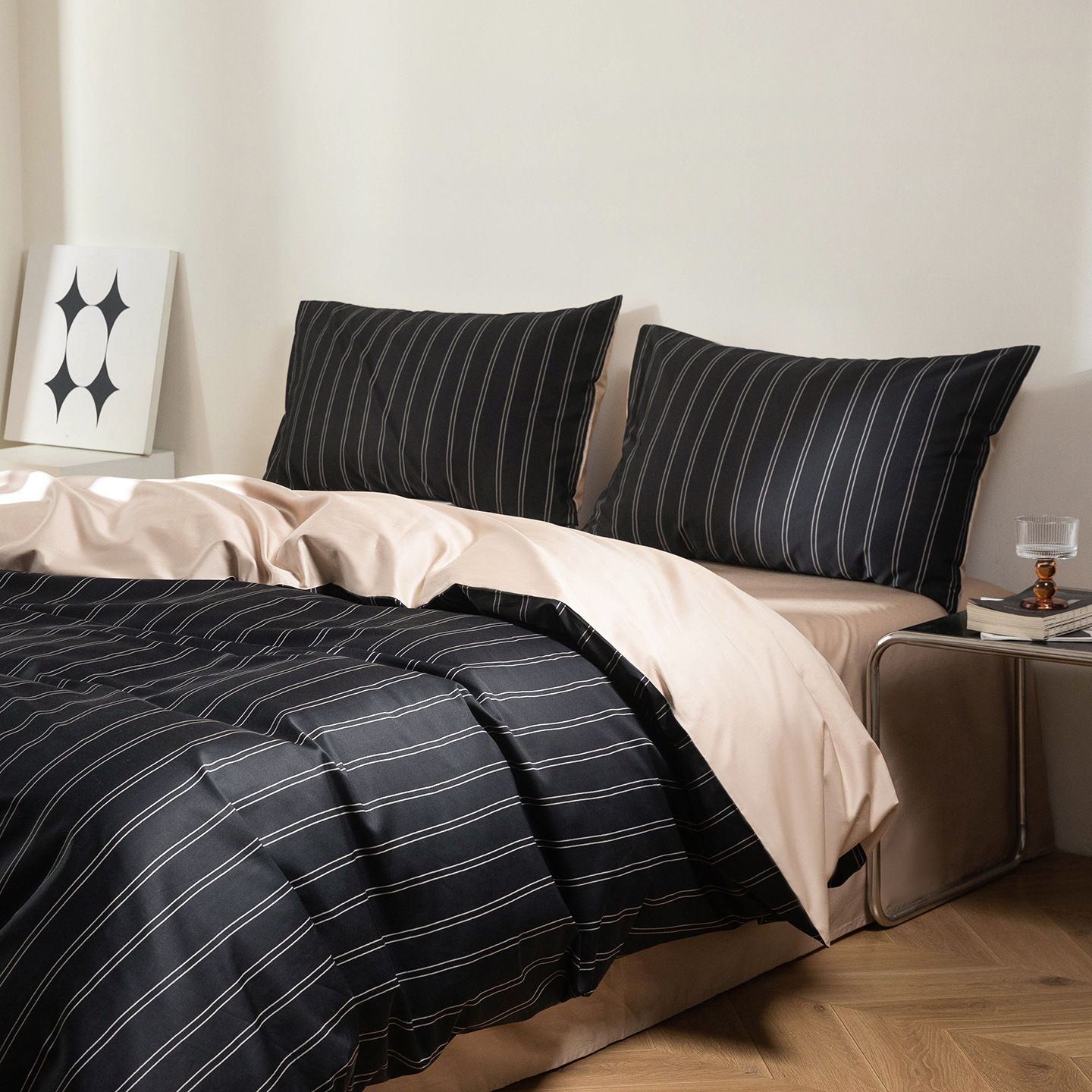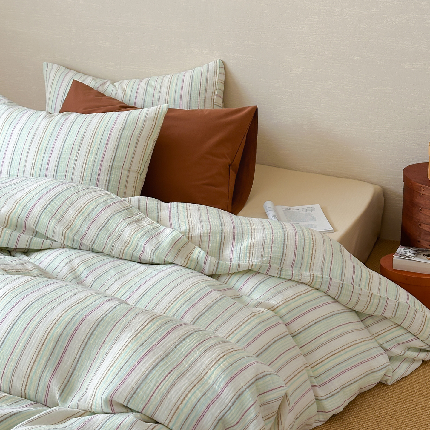 ライトラグジュアリーコットン長繊維綿ベッド4点セット純綿アパートシンプルストライプキルトカバーシーツベッドシーツ高級感