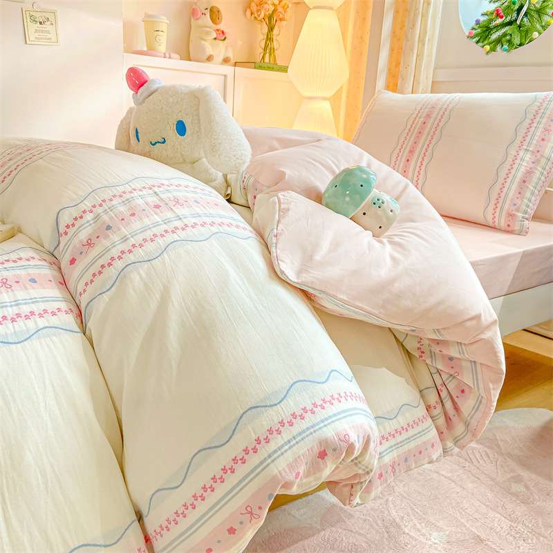 小さな新鮮な純綿 4 点セット二層しわ綿シーツキルトカバー寮 3 点セットシンプルな寝具