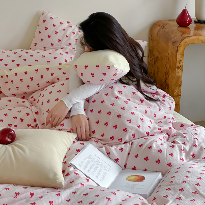 ins 小さな新鮮な純綿ジャカード 4 点セット綿二層糸クラス A リボンガーゼ綿 100 寝具