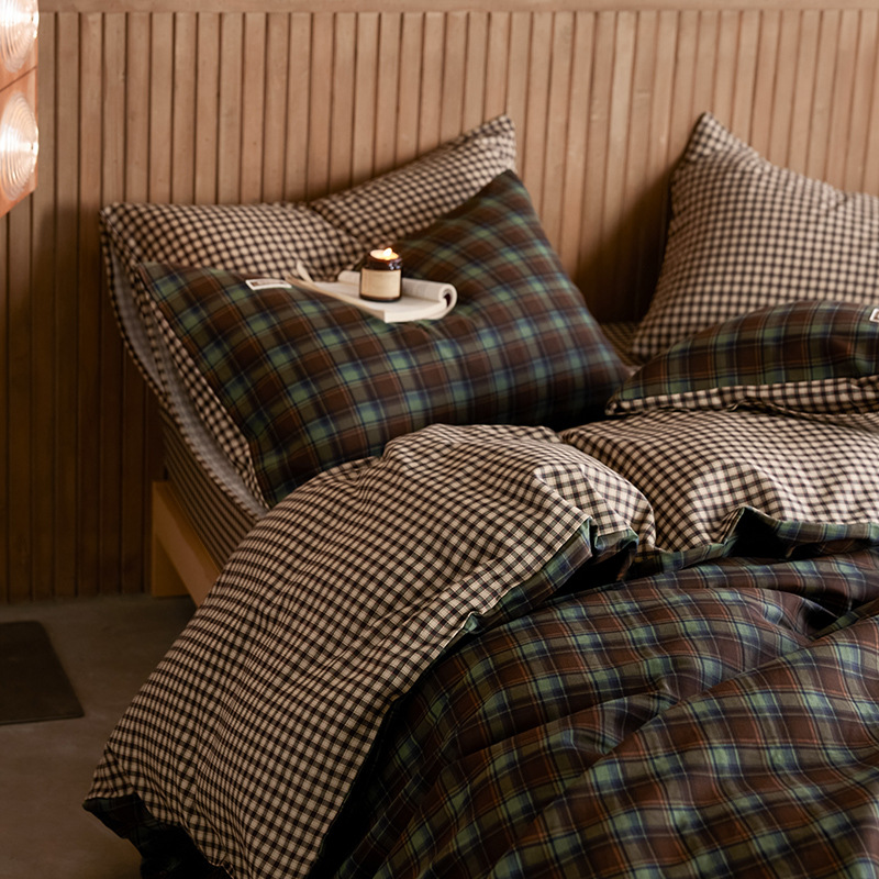 レトロチェック柄純綿二層糸4点セットカレッジスタイルスコットランドチェック柄ニュートラルコットンベッドシーツキルトカバーベッドシーツ