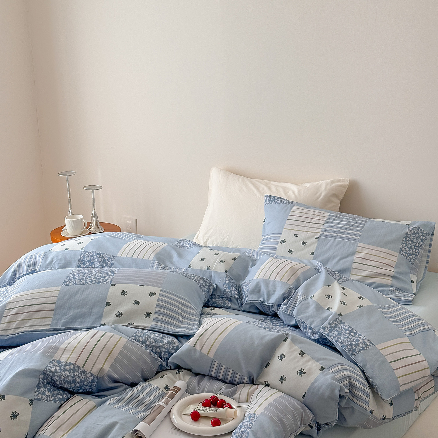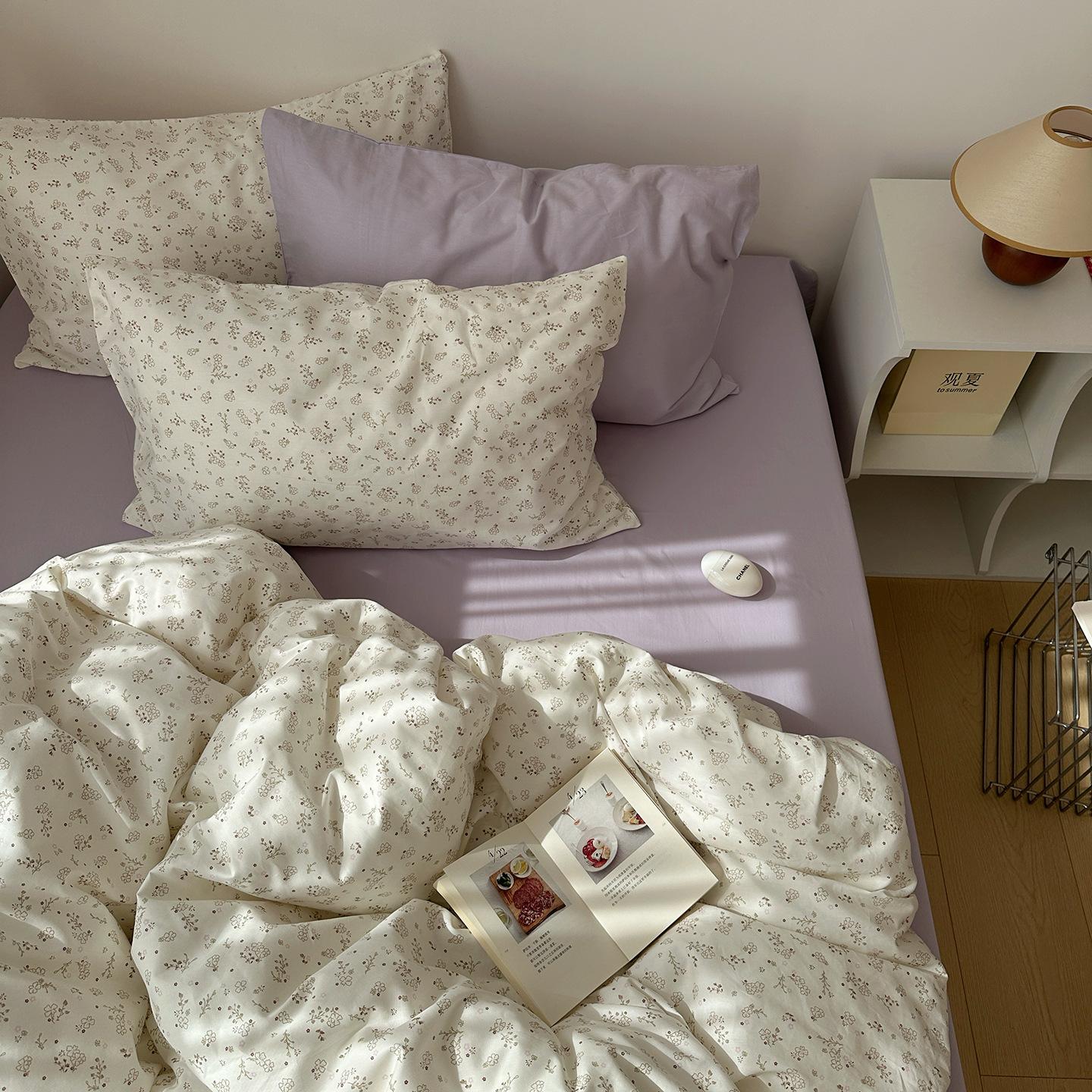 ins 韓国風純綿花柄 4 点セットミックスアンドマッチ小さな新鮮な綿のベッドシーツとキルトカバー寮 3 点セット卸売