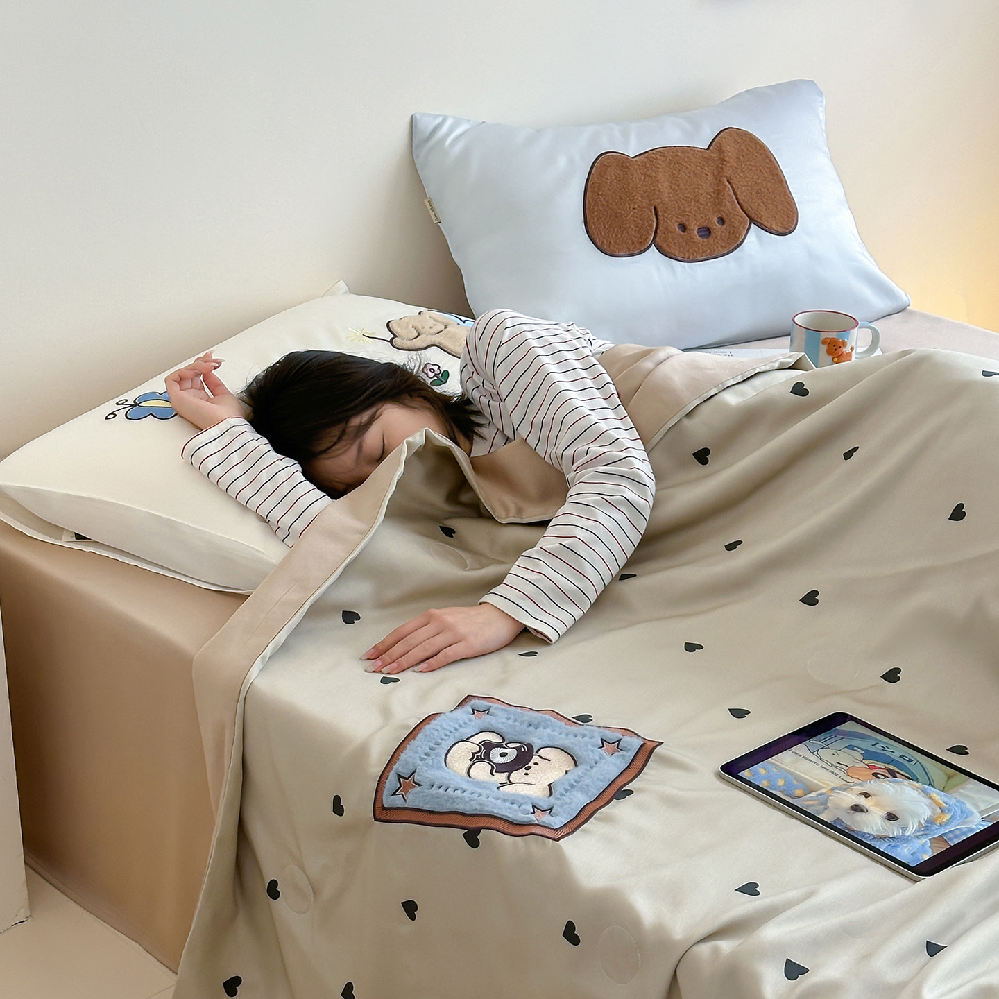 アニメ風夏涼被60蘭精天糸刺繍夏被四点セット水洗い両面涼感エアコン被氷糸