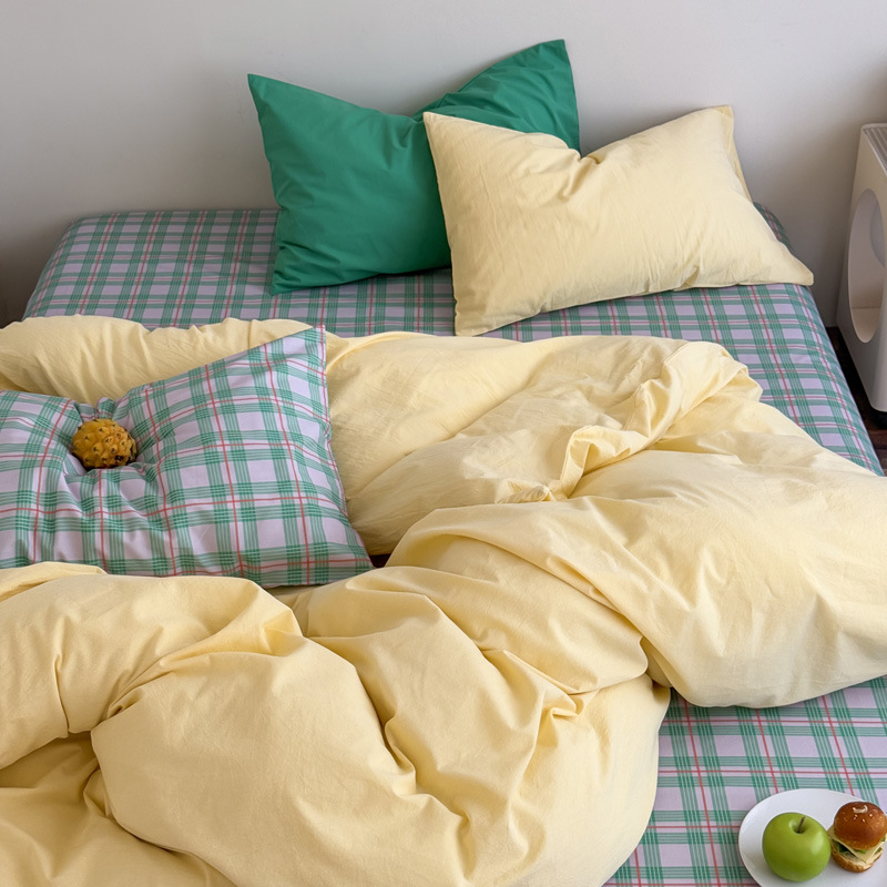 Ins博主風混合綿100% 水洗浄綿4点セット衝突色布団シーツ小清新寮3点セット1.8