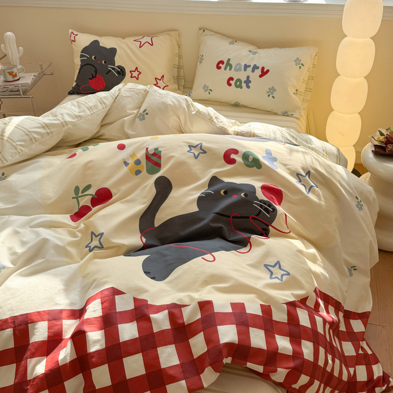 漫画の大版の綿の4つのセットの子供の趣味の子猫の綿のシーツは学生の寮の3つのセットの卸売りのベッドの製品をカバーします。