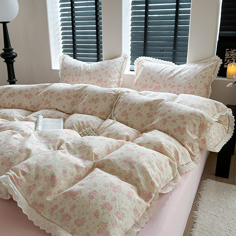純綿二重糸四点セットレトロ花レース純綿ガーゼins少女心シーツカバー卸売り