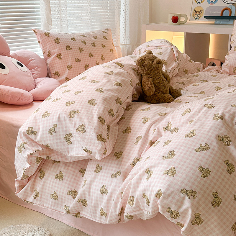 クリームins風格子熊純綿四点セット少女心純綿布団カバー可愛い三点セット1.8mシーツ
