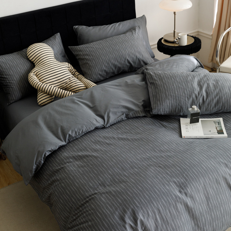 シンプルな風ins秋冬縞綿ニット4点セットシーツ布団カバー純綿天竺綿a類ベッド用品