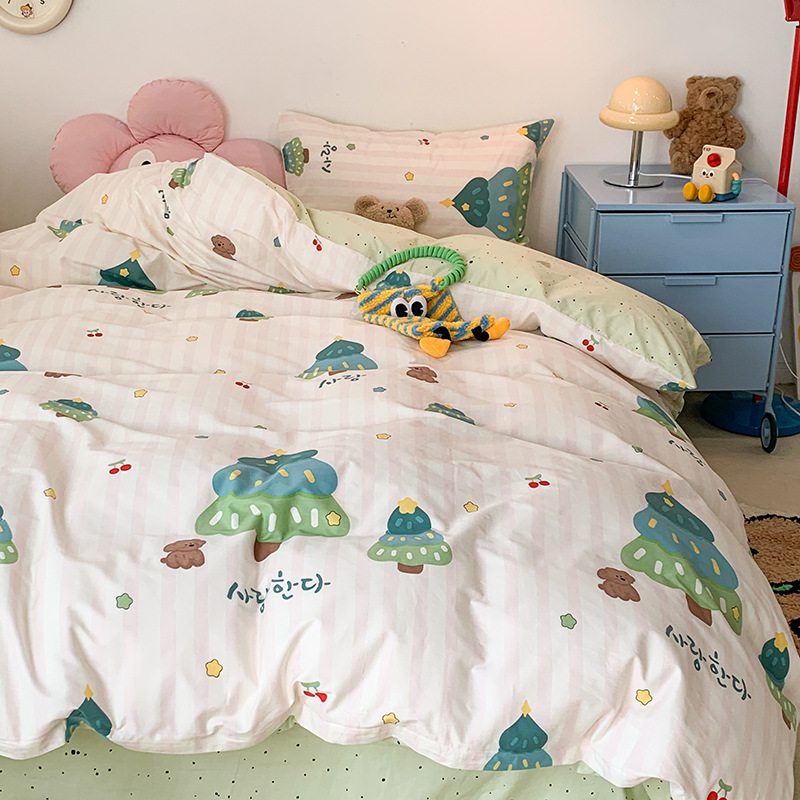 かわいいinsアニメ純綿四点セットシンプルで清新な純綿クリスマスツリー布団カバー学生三点セットシーツ4