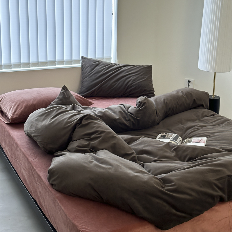 Ins非常にシンプルな風美ラード風キャラメルコーヒーミルクベルベット4セット1.5m1.8フランネルベルベットのベルベットが冬を厚くした