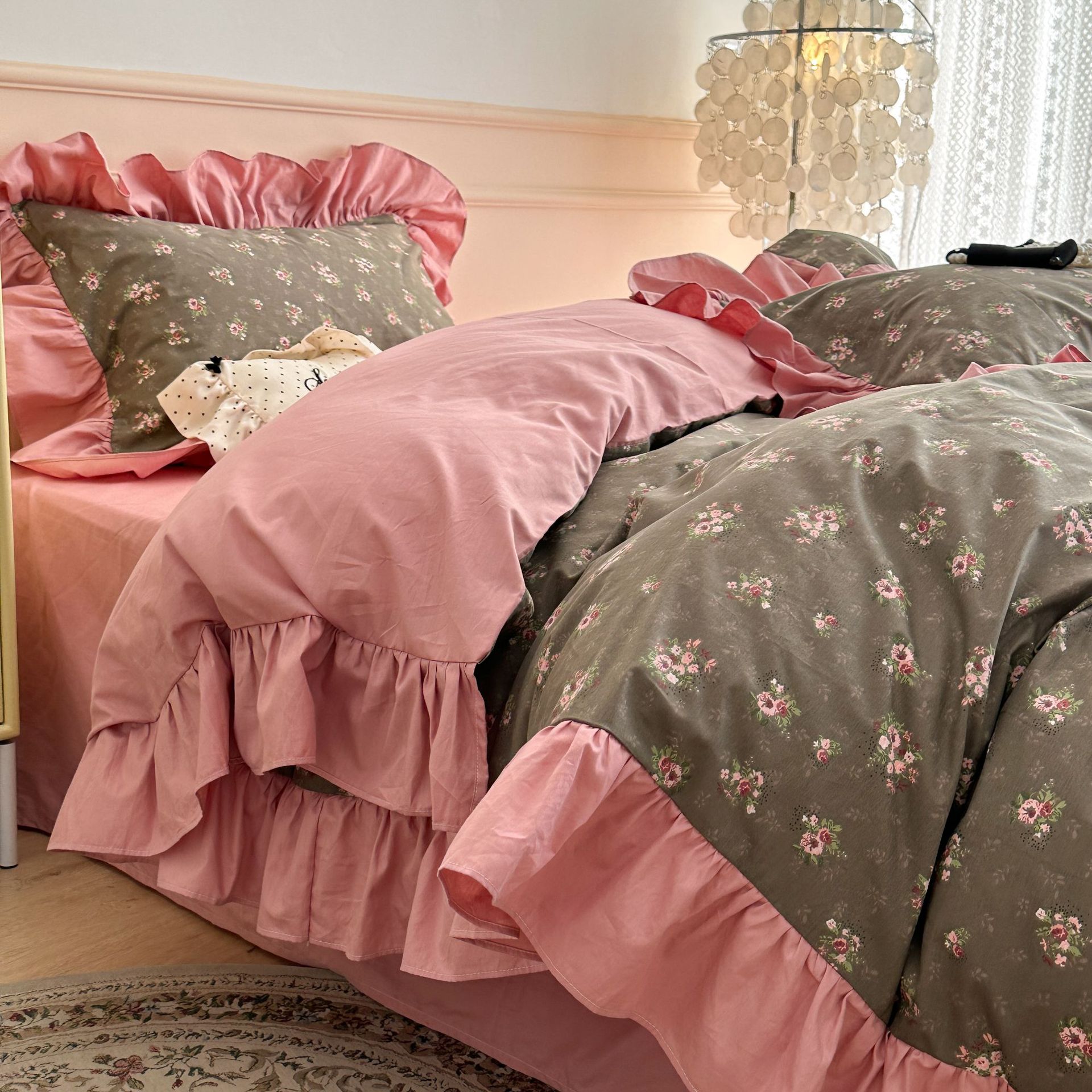 フランス風ロマンチックな小さな花の純綿4点セット仙美大レース綿カバー少女心1.5m1.8シーツ