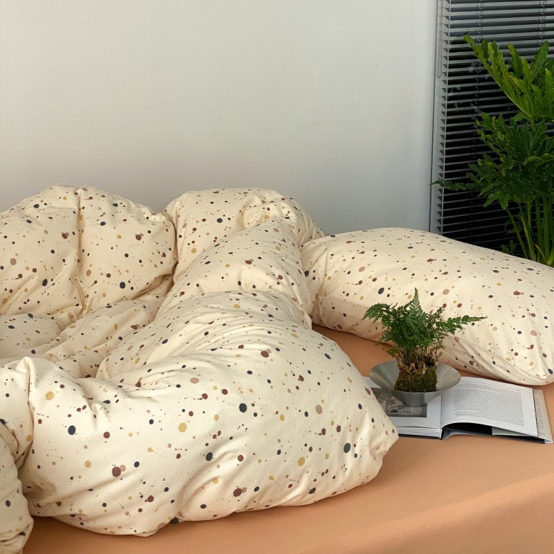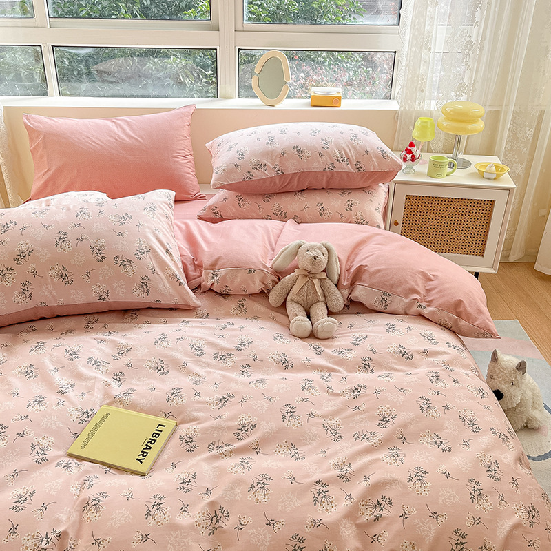 Ins風シンプルな純色綿4点セット無地綿水洗浄綿寮3点セットシーツ布団カバー1.8メートル