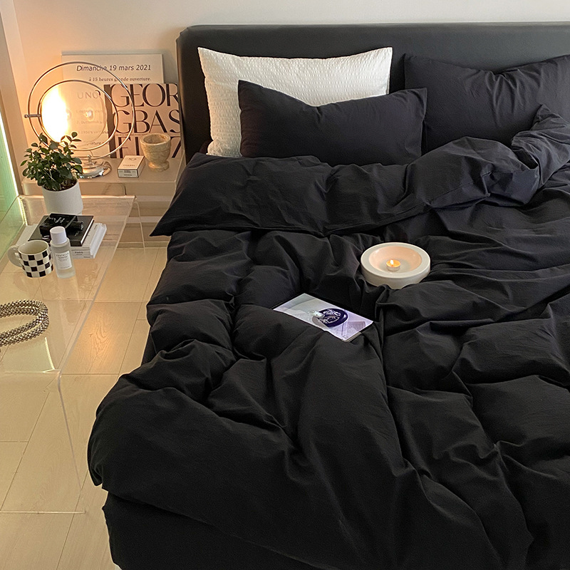軽豪華風シンプル水洗い綿4点セット綿綿綿綿柔らかい純色白黒布団シーツ笠寝具