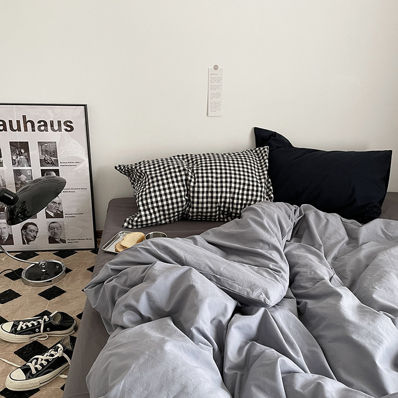 Ins格子シンプル北欧風純綿綿四点セットシーツ布団カバー寝具三点セット