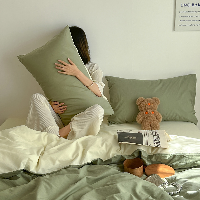 Ins韓風二重衝突色純綿水洗綿四点セットシンプルで清新な純綿1.8メートルベッドシーツ寝具