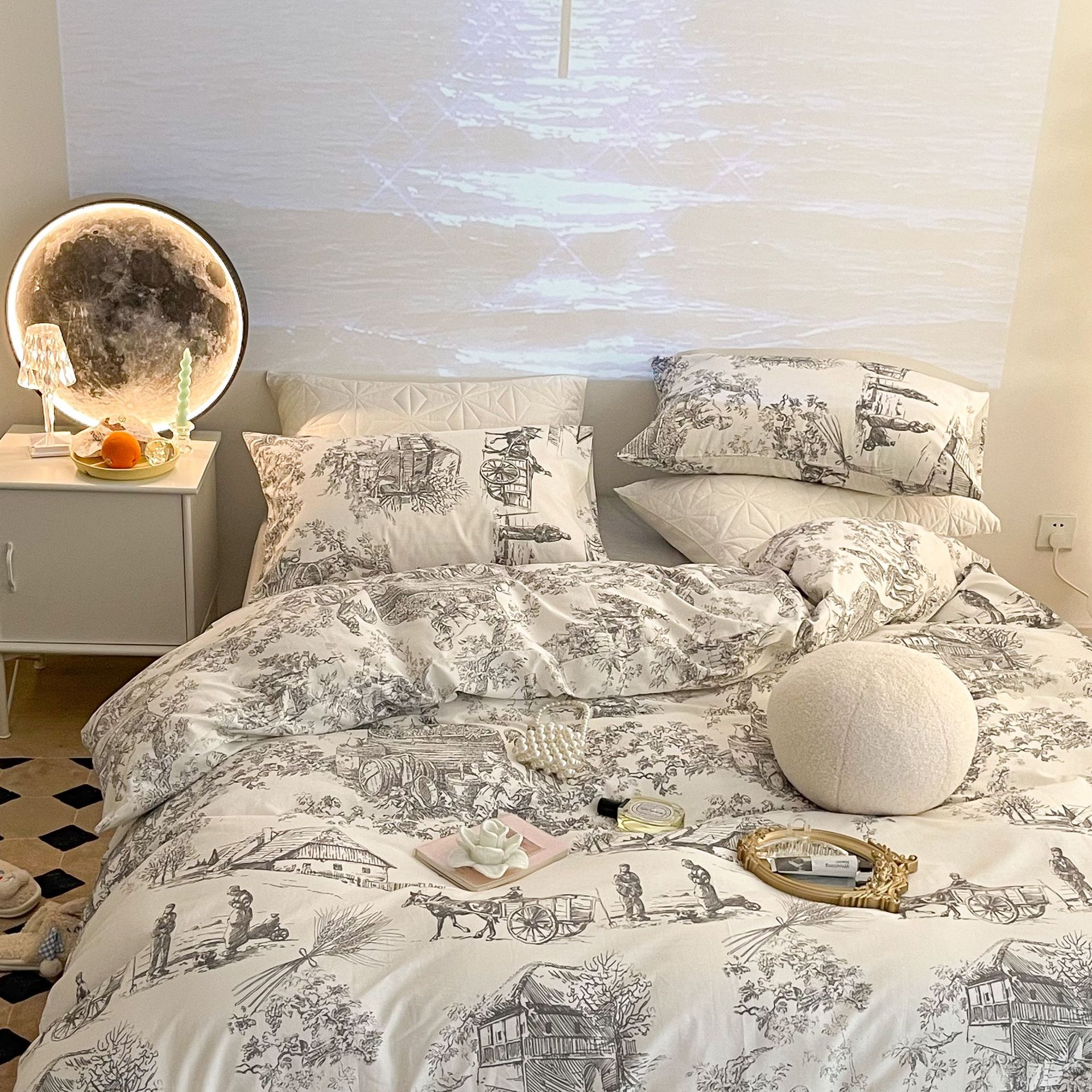 Ins韓国水墨画純綿四点セット抽象派純綿1.5m1.8シーツシンプル北欧寝具