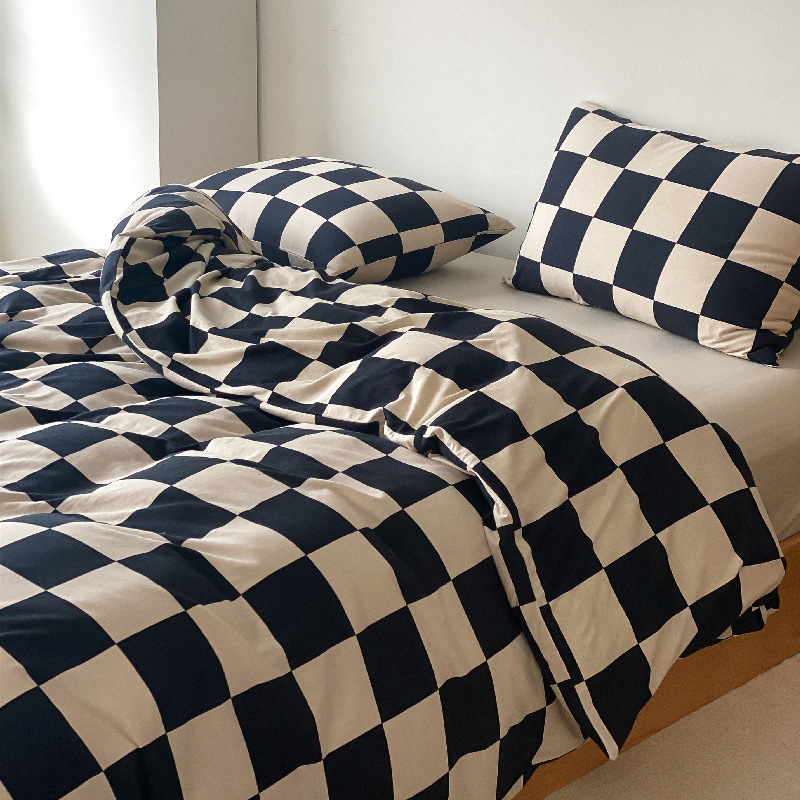 Ins棋盤格純綿ニット綿四点セット純綿天蓋綿シンプル民宿小衆シンプルシーツ布団カバー