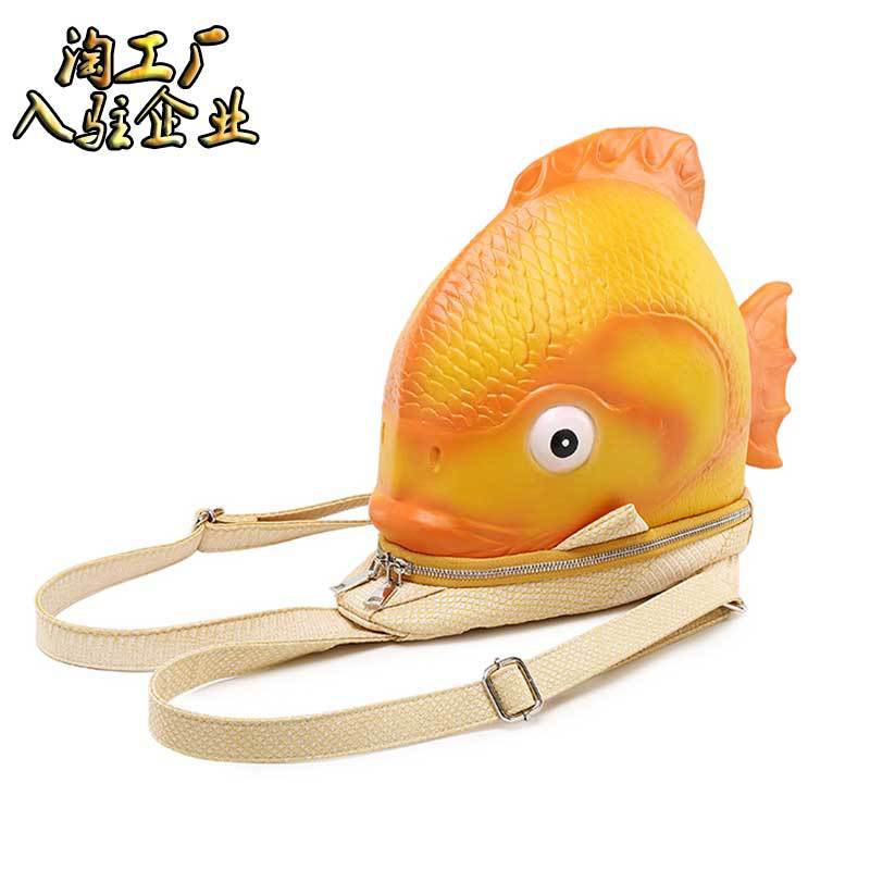 2018新型pu婦人リュックサック金色萌え趣味小魚包アニメミニ女性カバン創意モデル動物リュックサック