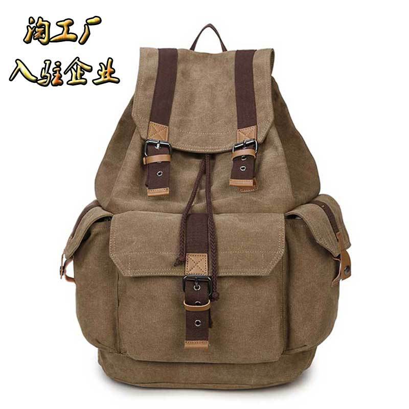 大容量キャンバスのリュックサック男性欧米のアウトドア旅行スポーツパソコンのカバンの純色のレトロな登山バッグの最後のモデル