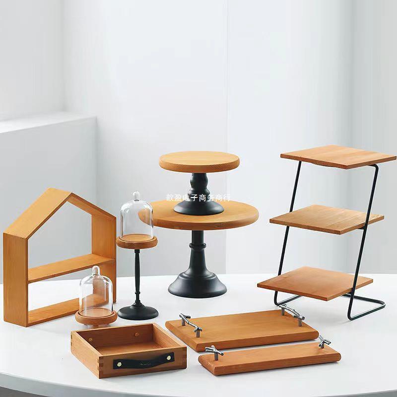 原木森系デザート棚木製茶休憩レトロクリエイティブオリジナル木製棚結婚式ドーナツ菓子トレーデザート台