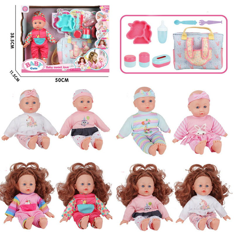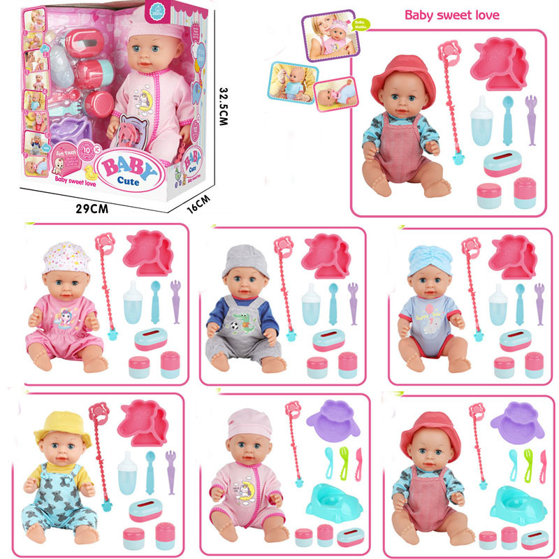 国境を越えた12インチの子供のシミュレーションエナメル綿の人形セットに付属品の赤ちゃんのままごとの知育玩具がついている