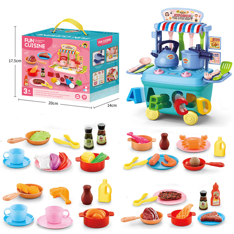 国境を越えた子供たちは、台所のハンバーガーのフライドチキンのセットをシミュレートして、洋食キッチンのインタラクティブな料理セットのおもちゃを作っています
