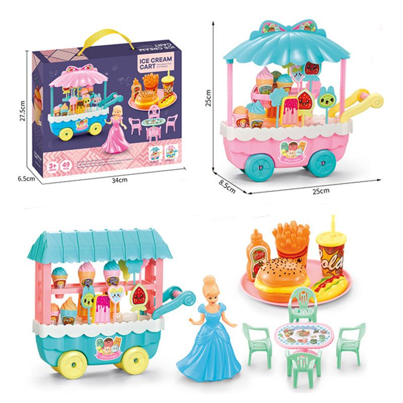 クロスボーダー子供アイスクリームトロリーアクセサリー付き女の子ままごとミニdiyキャンディーカーおもちゃ車プレゼント