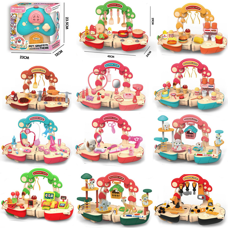 国境を越えた子供のままごと趣味のきのこ屋の斜めショルダーバッグは食器の道具の装飾品の医療道具のおもちゃのセットをシミュレーションします。