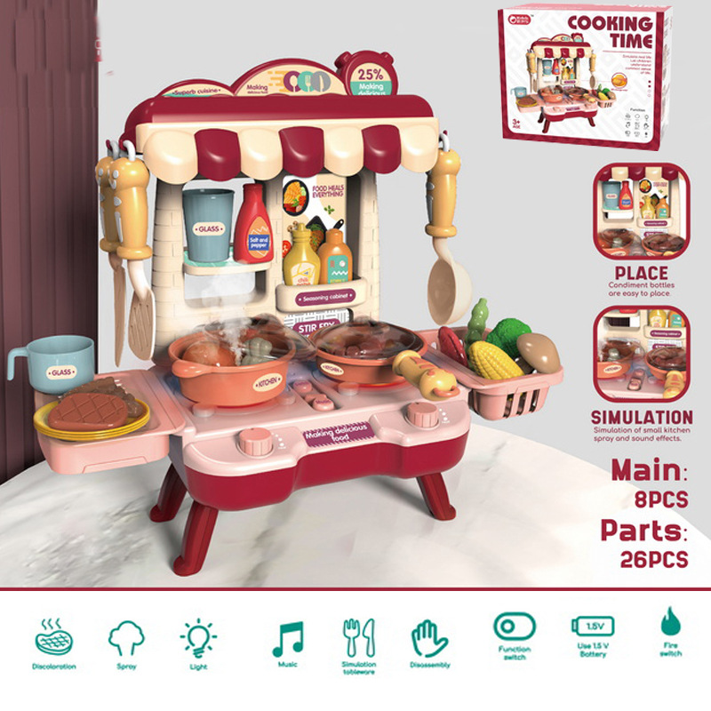 国境を越えた子供たちは、バーベキュー台のおもちゃセットは台所のスプレー音光炊飯知育玩具をシミュレートしている