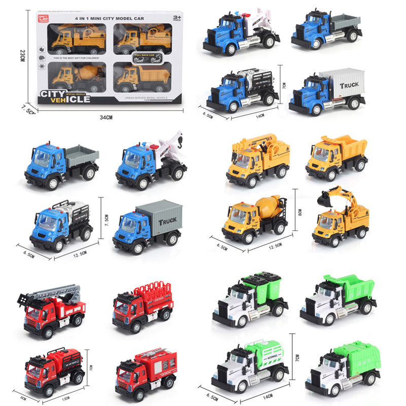 クロスボーダー1:64児童回力玩具ギフトボックスセットシミュレーション工事消防環衛運搬車模型プレゼント