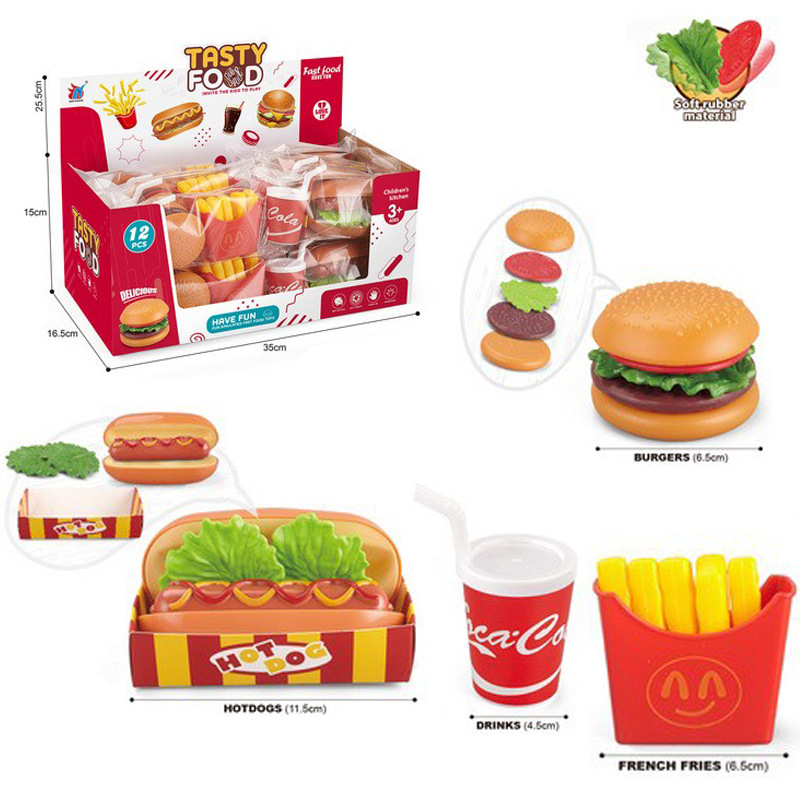 国境を越えた模擬洋風ハンバーガーホットドッグポテトコーラファストフードセットは子供のままごと知育玩具を分割することができる