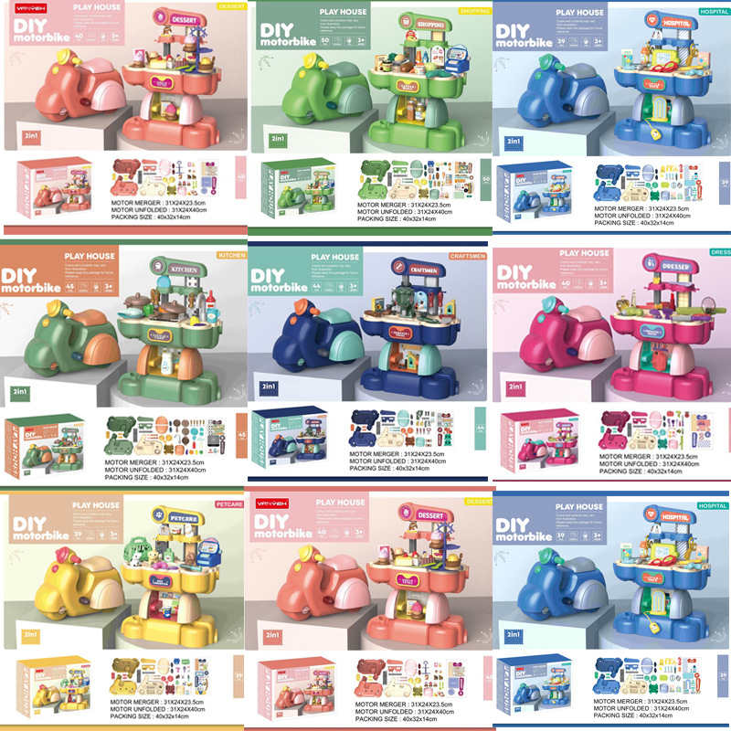 クロスボーダー二合一子供ままごとdiyシミュレーションアクセサリー医療用品デザートペットオートバイ玩具セット