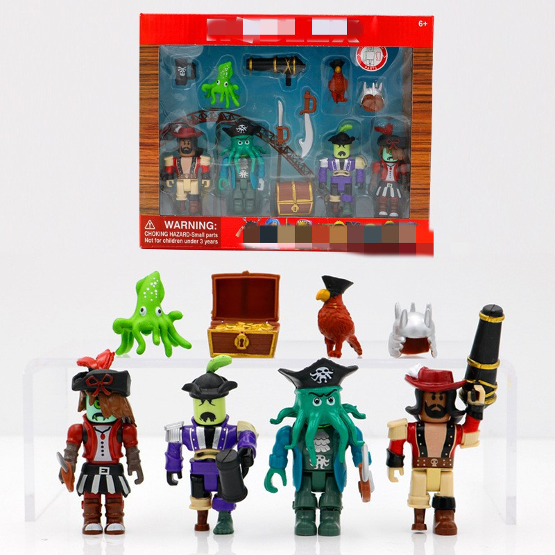 国境を越えた積み木公仔2.5-3インチ仮想世界海賊対決手公仔4匹 + アクセサリーケース