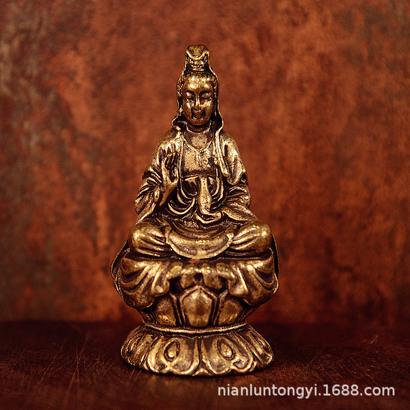 中実の純銅観音菩薩の仏像は真鍮のデスクトップの神像を並べます。