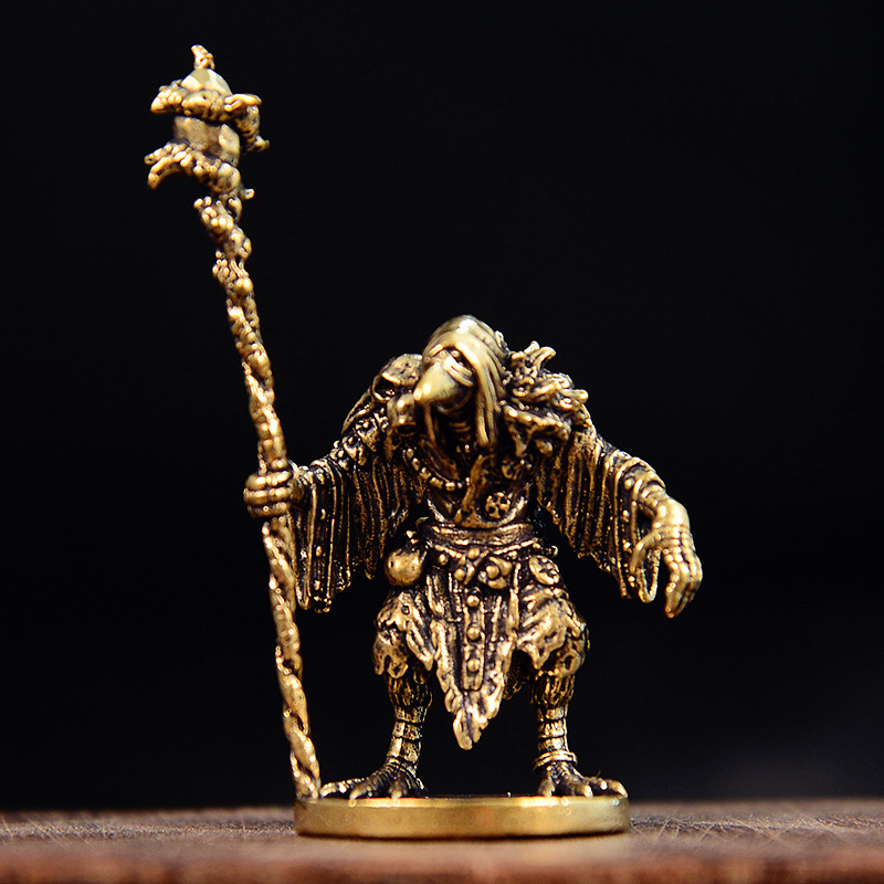 クロスボーダーebay外国貿易の覇気の呪術師の鳥人の黄白の銅の置物は古い古銅の微彫刻のお茶を作って小さい置物の卸売りをかわいがります。