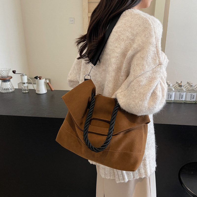 トートバッグ女性2024新型冬デザイン質感小大衆大容量とキャンプレース布シングル肩ショルダーバッグ