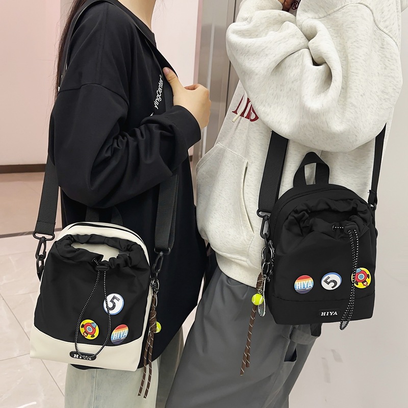 アウトドア騎行バッグ女性の個性的なひもとキャンプバッグのリュックサックの潮散歩シングル肩携帯バッグ中学生斜めショルダーバッグ