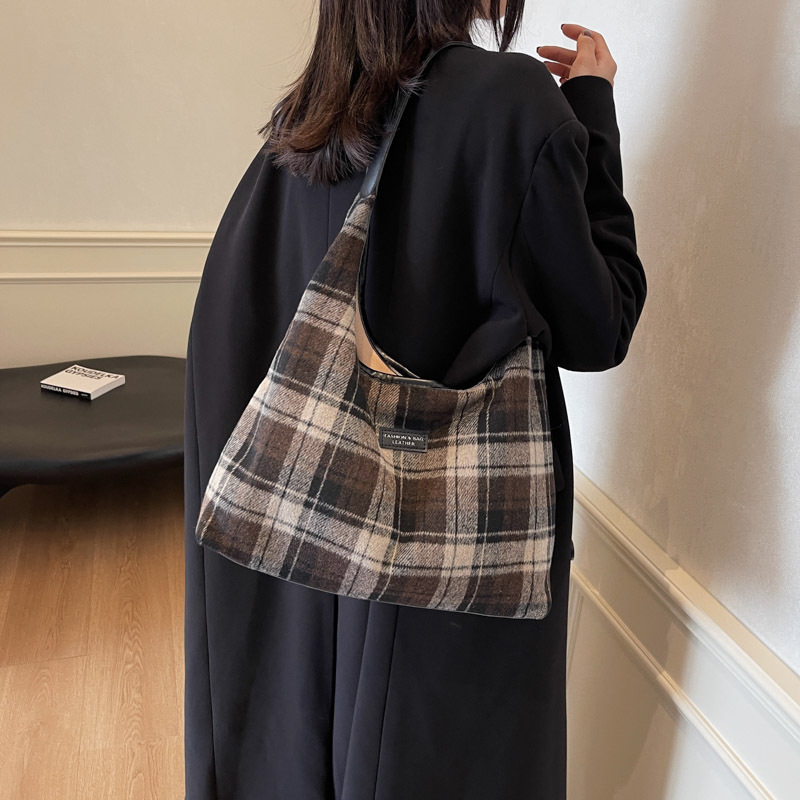 毛の格子の布の包みの女性の2024の新型の潮の韓国版とキャンプの特の包みのカジュアルな大容量のシングル肩の斜めのショルダーバッグ