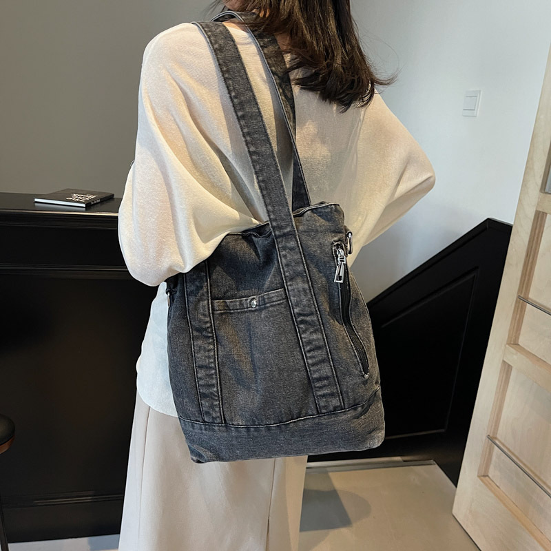 レトロでシンプルなデニムバッグとキャンプの純色の水洗いデニムキャンバスバッグの学生ショルダーバッグ
