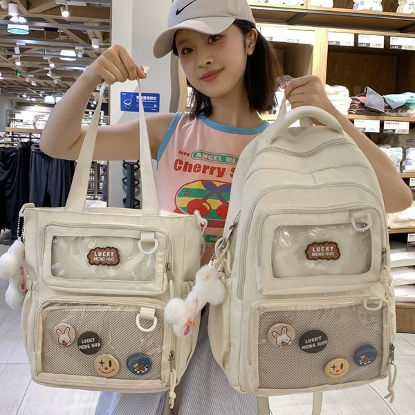 森系大容量ランドセル女ins学院風軟妹少女百合透明痛包学生授業かばん