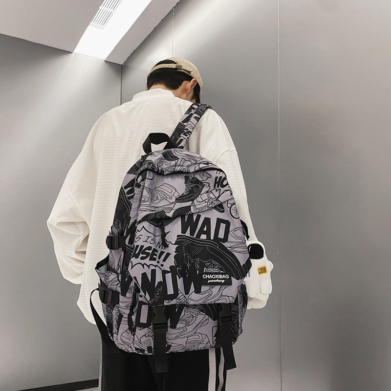 リュックサック男女潮牌ins日系個性落書き大容量と男性リュックサック高校のカバン男