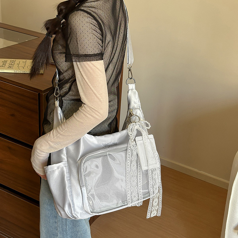日系シンプルな純色バッグ女性とキャンプの百合insカメラバッグ2024夏のワイドショルダーバッグ