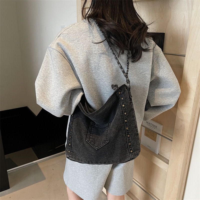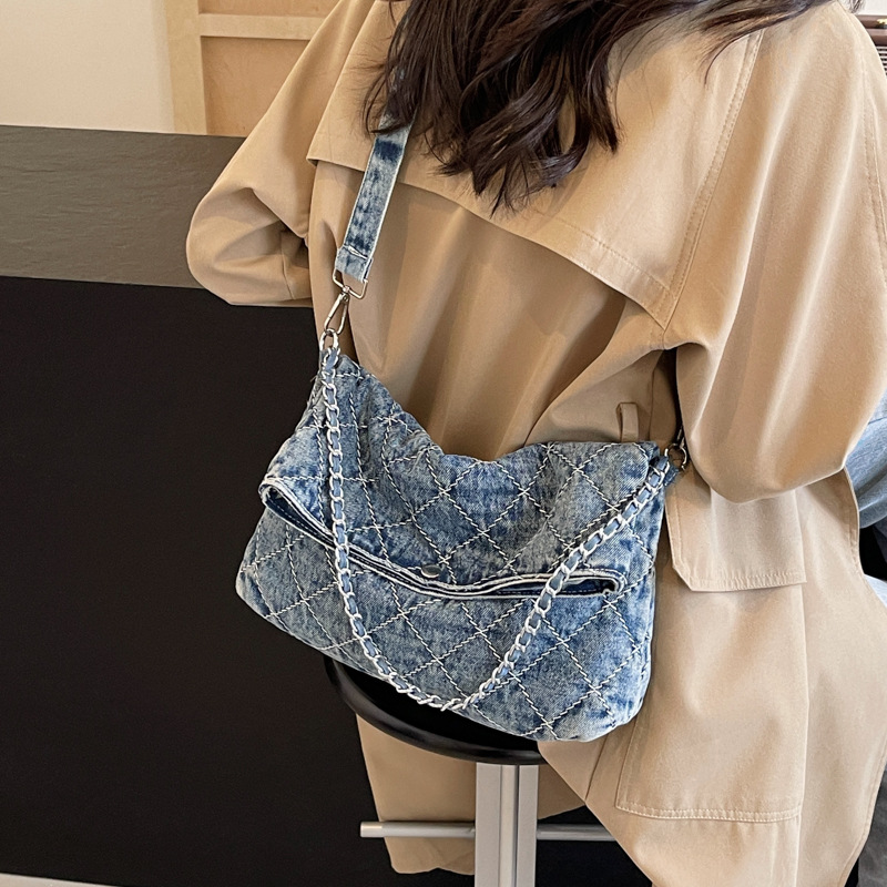 今年人気の大容量Ruiyingデニムトートバッグ2025新作菱形チェーン脇の下ショルダークロスボディバッグ