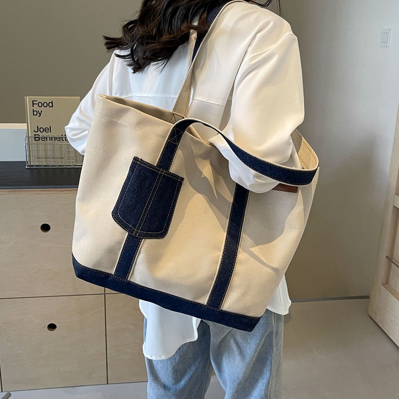 デニムのズックのショルダーバッグをつなぎ合わせて、女性の大容量とキャンプの特包学生のハンドバッグのファッションの通勤バッグを包みます。