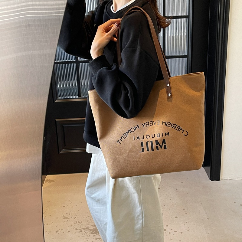 アルファベットキャンバストートバッグ女性2025新型ファッション大容量手提げ袋韓国版とキャンプ通勤ショルダーバッグ